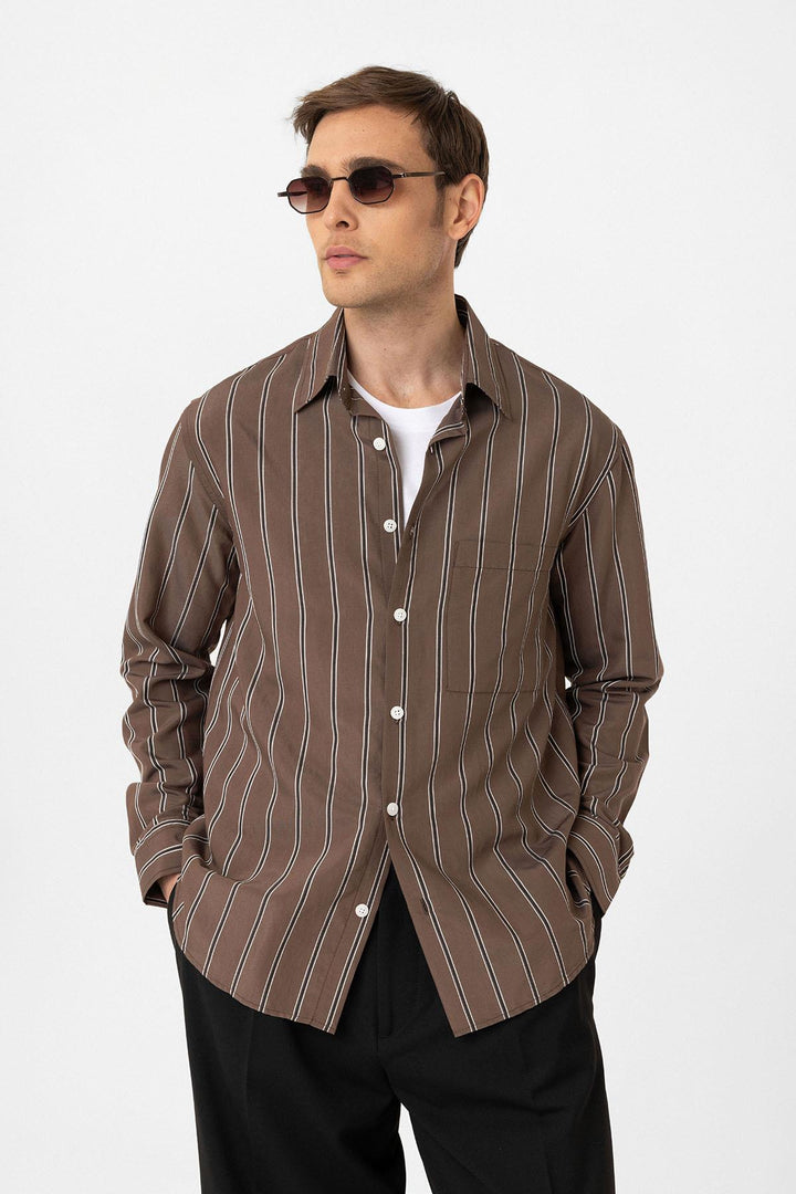 Antioch Long Sleeve Shirt, which stands out with its unique stance dominated by coffee, impresses with its luxurious design reflecting a characteristic silhouette. The Long Sleeve design is completed with a Full Button closure. With its luxurious texture and fit, this design ensures you feel extremely comfortable, suitable for your daily urban styles and office combinations. You can pair it with various pants according to your preference, giving you a stylish and bold look, elevating your style one step further.