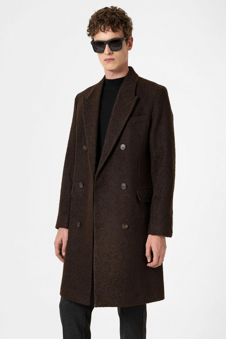 ANT Antioch Coffee Herringbone Patterned Men's Coat - Coral Springs