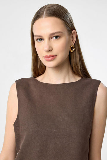 ANT Antioch Coffee Linen Blend Women's Blouse - Vienna