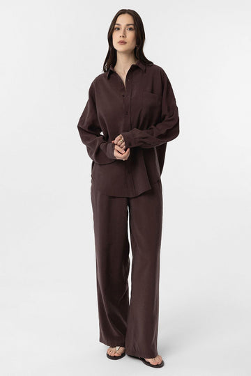 ANT Antioch Coffee Modal Women's Shirt Pants Suit - Houten