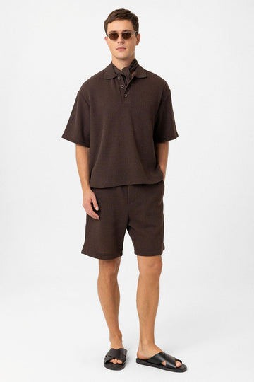 ANT Antioch Coffee Polo Neck Textured Relaxed Fit Men's T-Shirt - Appleton