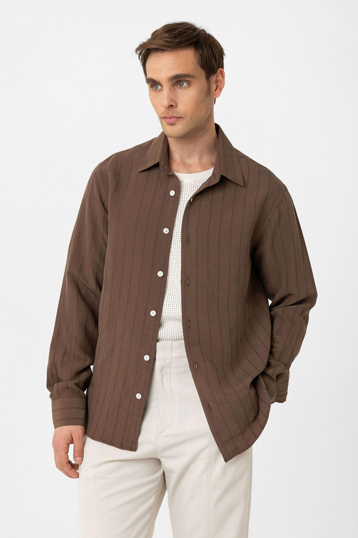 ANT Antioch Coffee Relax Fit Striped Men's Shirt - Midwest City