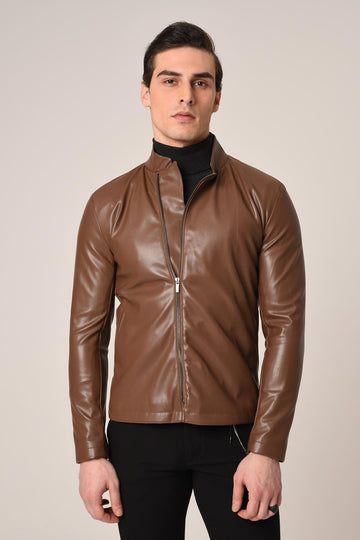 ANT Antioch Coffee Stand-Up Collar Leather Jacket - Iormughanlo