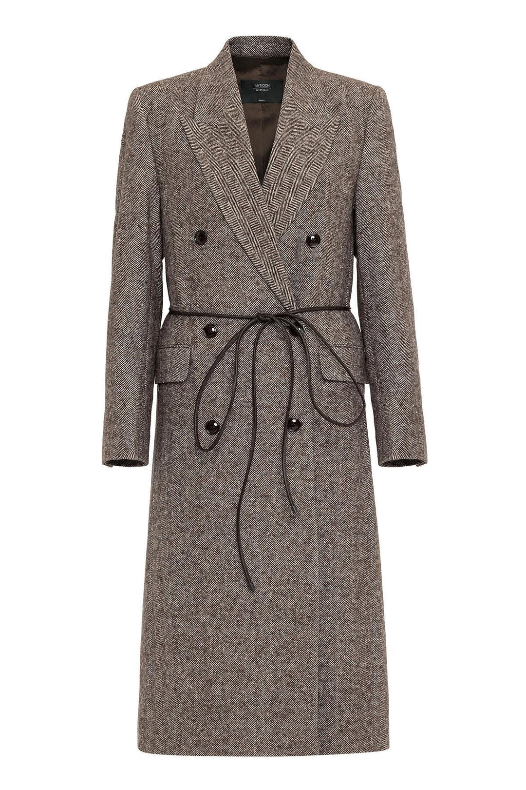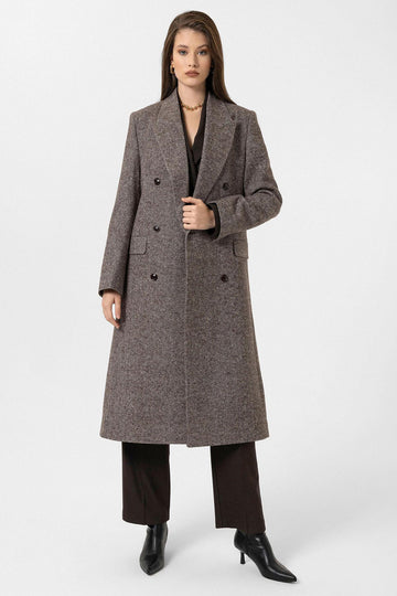 ANT Antioch Coffee Woman Herringbone Patterned Double-Breasted Coat - Turin
