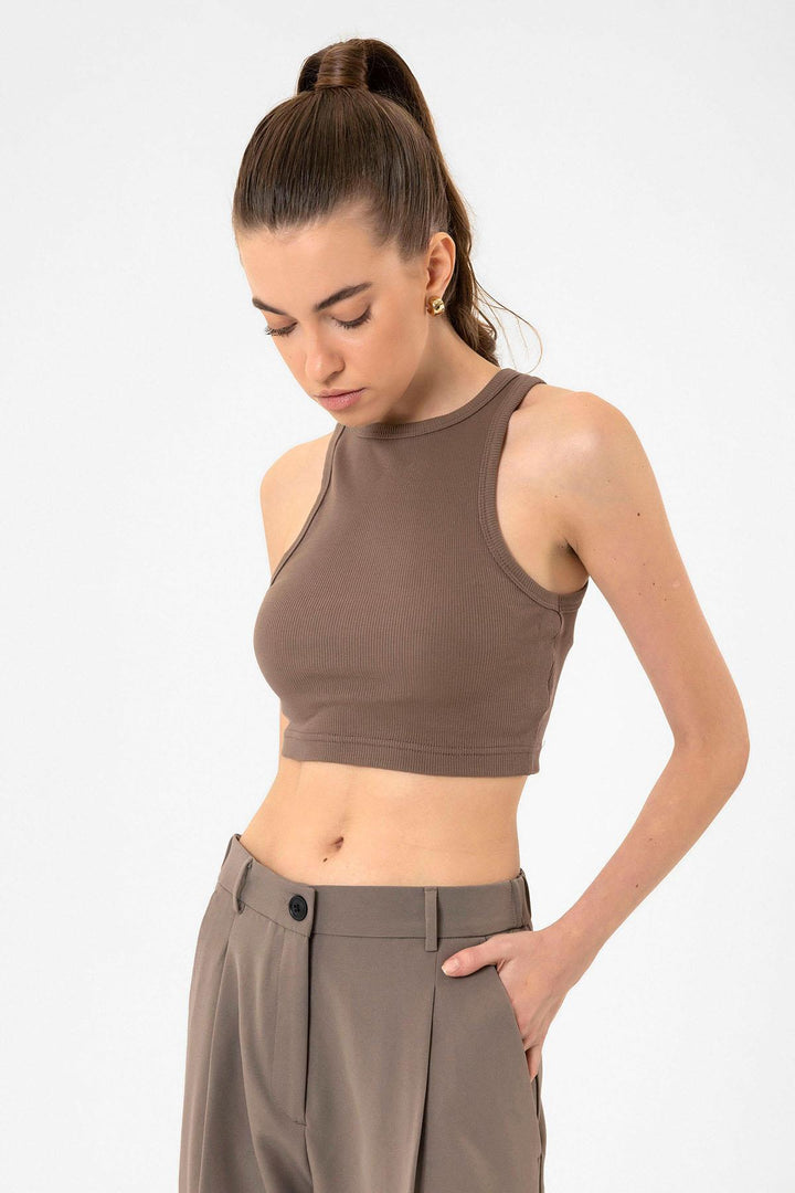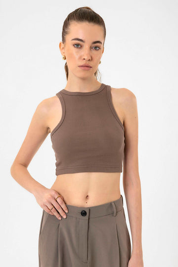ANT Antioch Coffee Woman Ribbed Crop Tank Top - Stolberg