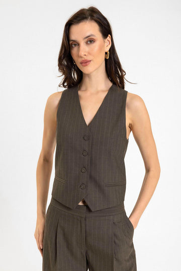ANT Antioch Coffee Woman Striped Button Closure Vest - Noblesville