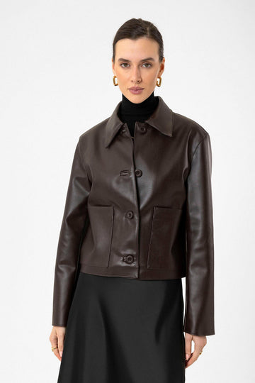 ANT Antioch Coffee Women's Polo Neck Faux Leather Jacket - Cerignola