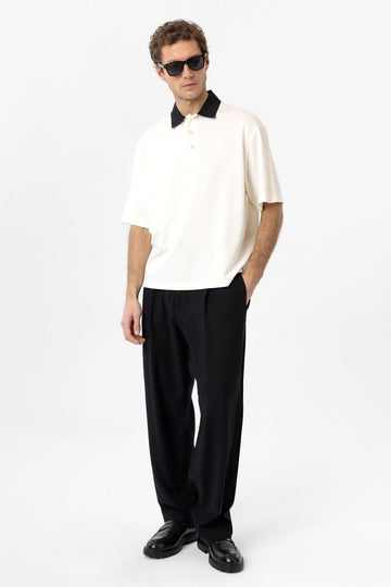 ANT Antioch Ecru Contrast Collar Interlock Textured Men's T-Shirt - Oradea