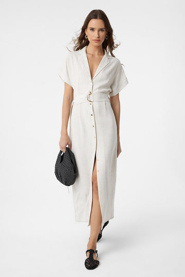 ANT Antioch Ecru Linen Blend Belted Women's Dress - Blanes
