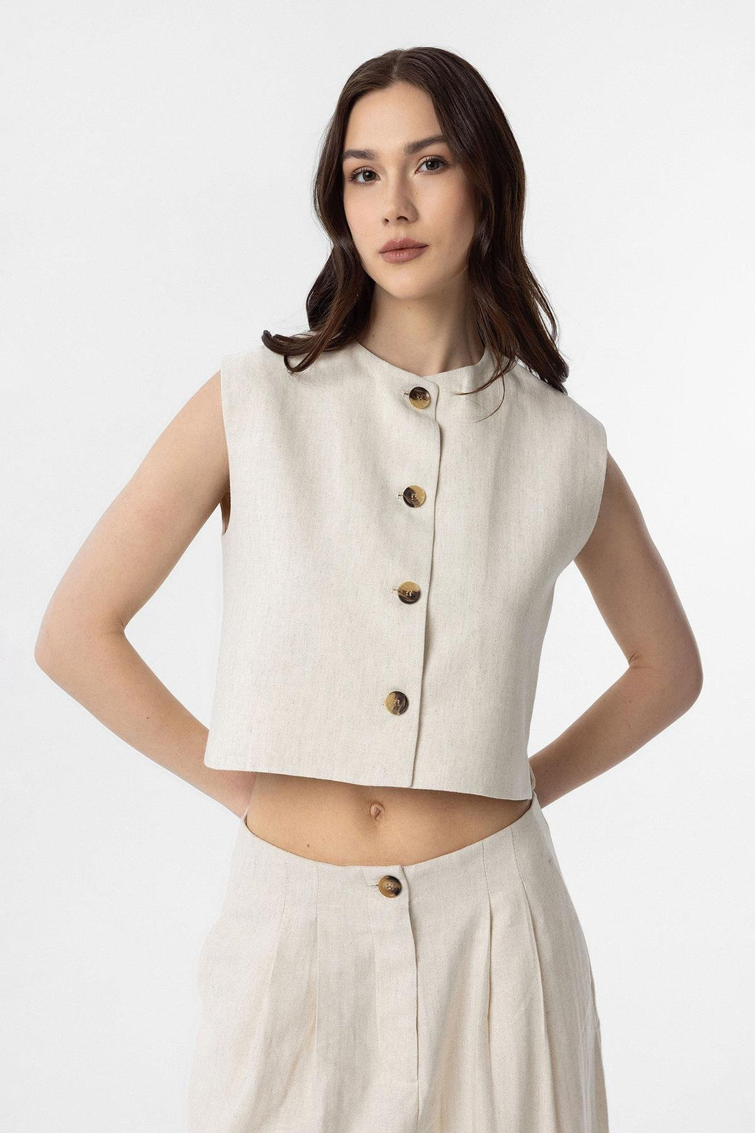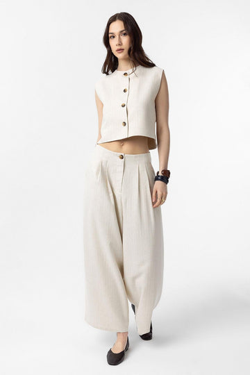 ANT Antioch Ecru Linen Blend Relax Fit Women's Vest - Heilbronn