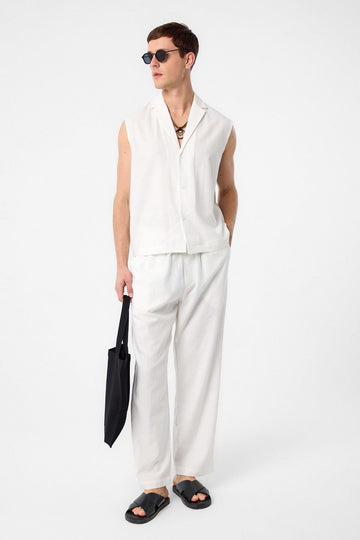 ANT Antioch Ecru Linen Blend Sleeveless Men's Shirt - Gjilan