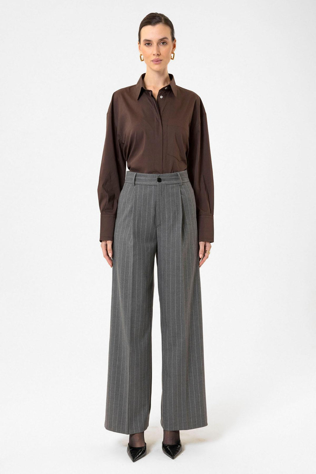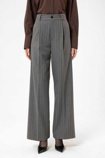 ANT Antioch Gray Women's High Waist Pleated Striped Pants - Kingston
