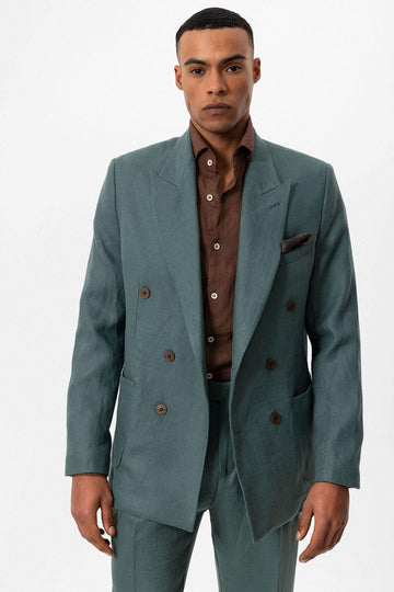 ANT Antioch Green 100% Linen Double Breasted Men's Blazer Jacket - Corroios