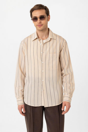 Antioch Long Sleeve Shirt, which stands out with its unique style dominated by beige, impresses with its luxurious design reflecting a characteristic silhouette. The Long Sleeve design is completed with a Full Button closure. With its luxurious texture and fit, this design ensures you feel extremely comfortable, suitable for your daily urban styles and office outfits. You can pair it with various pants according to your preference, giving you a chic and bold look, elevating your style one step further.