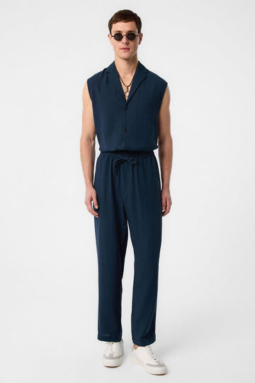 ANT Antioch Navy Blue Linen Blend Jogger Men's Pants - Wilhelmshaven