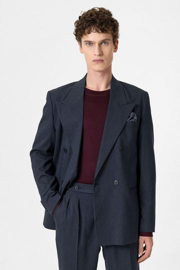 ANT Antioch Navy Comfortable Shawl Collar Striped Men's Blazer Jacket - Varese
