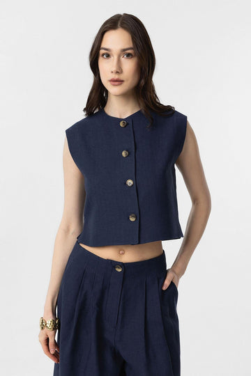 ANT Antioch Navy Linen Blend Relax Fit Women's Vest - Neubrandenburg