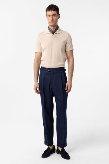 ANT Antioch Open Blue High Waist Italian Fit Pleated Men's Pants - Monroe