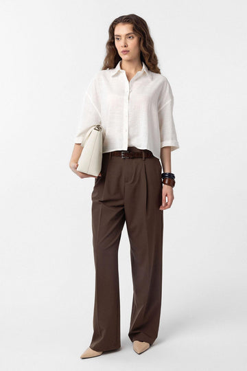 ANT Antioch White Cropped Textured Women's Shirt - Heidenheim