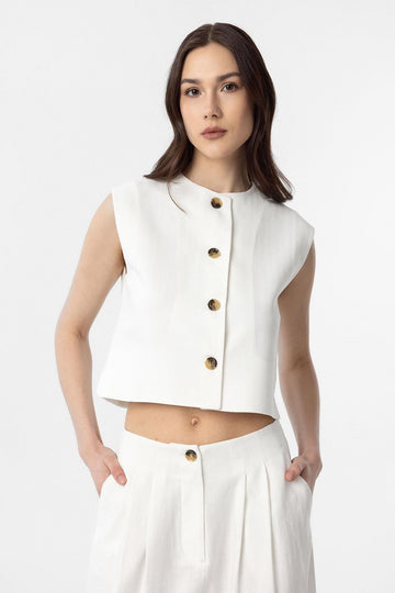 ANT Antioch White Linen Blend Relax Fit Women's Vest - Luxembourg