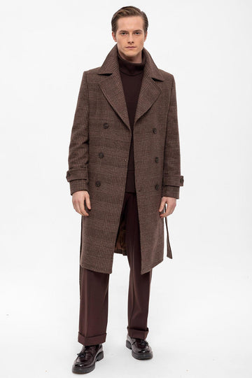 ANT Belted Double Breasted Closure Plaid Men's Coat - Reston