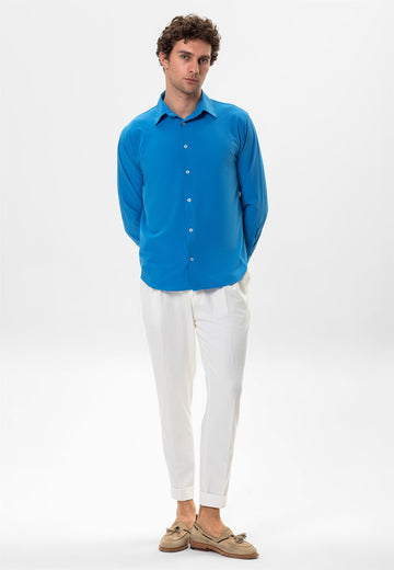 Turquoise dominating with its unique stance the Antioch Long arm Shirt stands out with its luxurious design reflecting a characteristic silhouette. The design of Long arm is complemented with Button closure. The design ensures you feel extremely comfortable with its luxurious texture and fit adapting to your daily city styles and office combinations. Depending on your preference the design can be used with various pants allowing you to achieve a stylish and assertive look taking your style one step further.