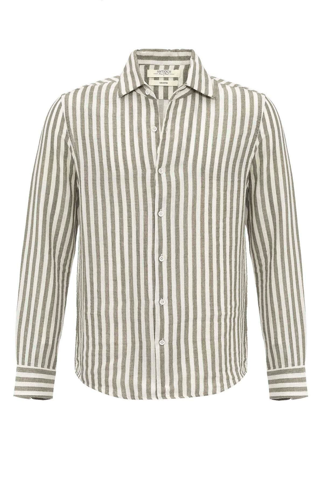 Khaki dominating with its unique stance the Antioch Long arm Shirt stands out with its luxurious design reflecting a characteristic silhouette. The design of Long arm is complemented with closure. The design ensures you feel extremely comfortable with its luxurious texture and fit adapting to your daily city styles and office combinations. Depending on your preference the design can be used with various pants allowing you to achieve a stylish and assertive look taking your style one step further.