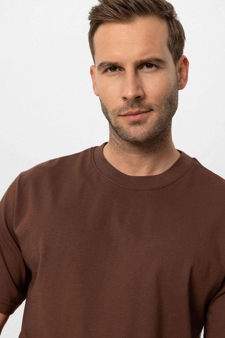 The Antioch Crew Neck T-shirt aligns well with your casual outfits due to its sporty texture. The unique structure of the Crew Neck knit offers comfort making users feel fresh and helping them reflect their style. This model crafted especially to cater to the taste of men who prefer sportswear is designed with chic design details.