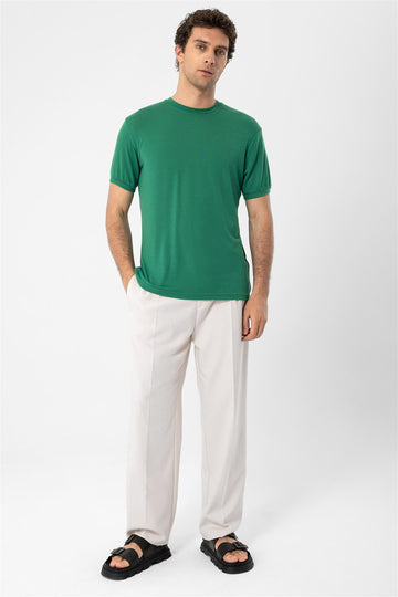 The Antioch Crew Neck T-shirt aligns well with your casual outfits due to its sporty texture. The unique structure of the Crew Neck knit offers comfort making users feel fresh and helping them reflect their style. This model crafted especially to cater to the taste of men who prefer sportswear is designed with chic design details.