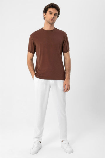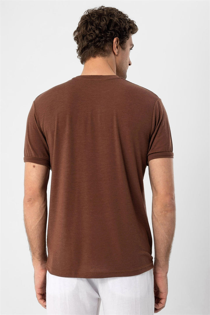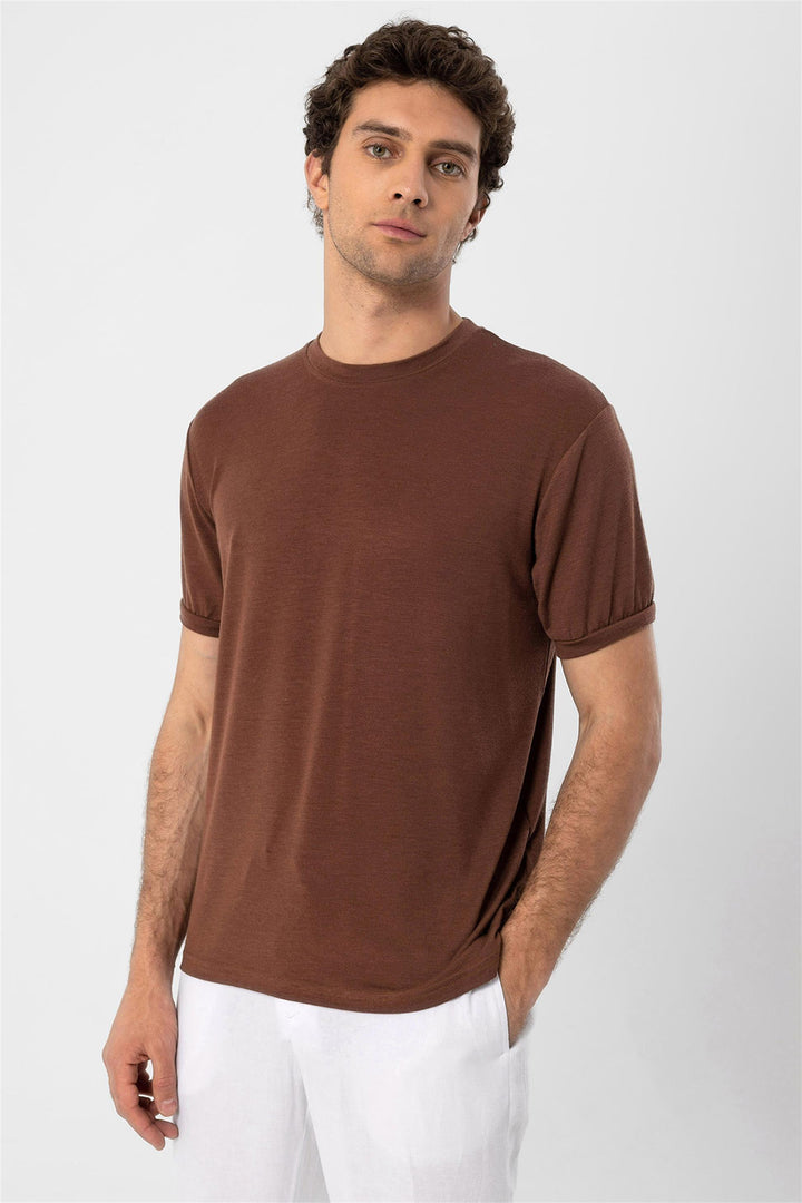 The Antioch Crew Neck T-shirt aligns well with your casual outfits due to its sporty texture. The unique structure of the Crew Neck knit offers comfort making users feel fresh and helping them reflect their style. This model crafted especially to cater to the taste of men who prefer sportswear is designed with chic design details.