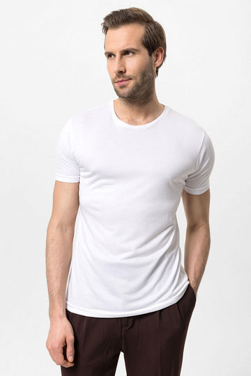 The Antioch Crew Neck T-shirt aligns well with your casual outfits due to its sporty texture. The unique structure of the Crew Neck knit offers comfort making users feel fresh and helping them reflect their style. This model crafted especially to cater to the taste of men who prefer sportswear is designed with chic design details.