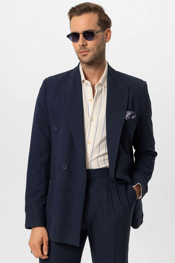 ANT Double-breasted Closure Linen Blend Men's Blazer Jacket - Kingston upon Thames