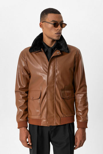 ANT Double Pocket Fur Collar Leather Coat - Irákleio