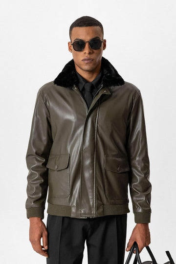 ANT Double Pocket Fur Collar Leather Coat - Victoriaville