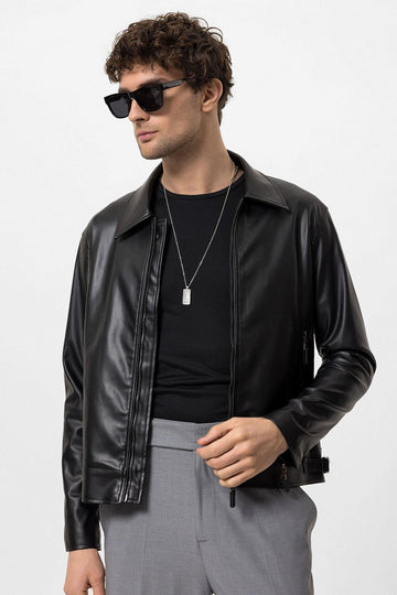 ANT Faux Leather Men's Jacket with Sleeve Zipper - Fitchburg