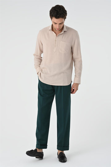 Beige dominating with its unique stance the Antioch Long arm Shirt stands out with its luxurious design reflecting a characteristic silhouette. The design of Long arm is complemented with Hidden Button closure. The design ensures you feel extremely comfortable with its luxurious texture and fit adapting to your daily city styles and office combinations. Depending on your preference the design can be used with various pants allowing you to achieve a stylish and assertive look taking your style one step further.