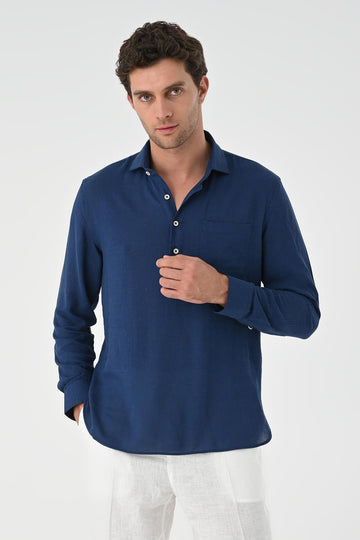 Indigo dominating with its unique stance the Antioch Long arm Shirt stands out with its luxurious design reflecting a characteristic silhouette. The design of Long arm is complemented with Hidden Button closure. The design ensures you feel extremely comfortable with its luxurious texture and fit adapting to your daily city styles and office combinations. Depending on your preference the design can be used with various pants allowing you to achieve a stylish and assertive look taking your style one step further.