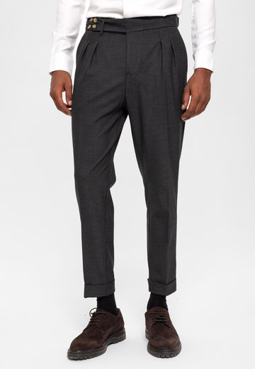 ANT High Waist (Boyfriend) Side Buckled Belt Detail Pleated Fabric Trousers - Mol
