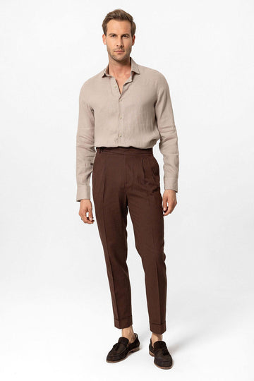 ANT High Waist Linen Blend Pleated Men's Trousers - Tucker