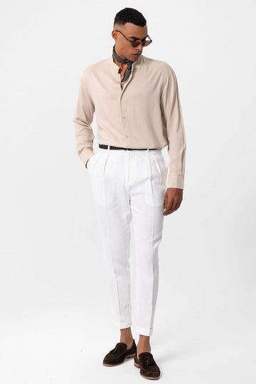 Beige dominating with its unique stance the Antioch Long arm Shirt stands out with its luxurious design reflecting a characteristic silhouette. The design of Long arm is complemented with closure. The design ensures you feel extremely comfortable with its luxurious texture and fit adapting to your daily city styles and office combinations. Depending on your preference the design can be used with various pants allowing you to achieve a stylish and assertive look taking your style one step further.