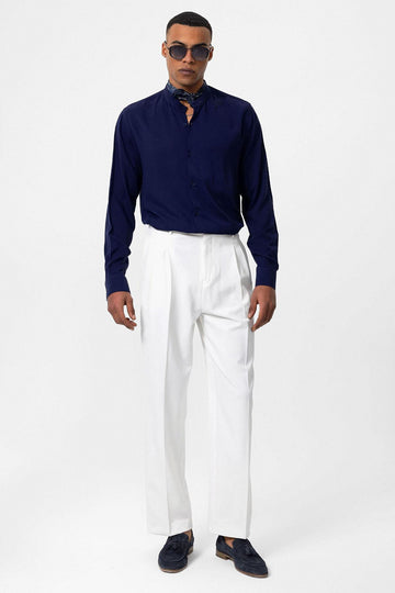 Navy Blue dominating with its unique stance the Antioch Long arm Shirt stands out with its luxurious design reflecting a characteristic silhouette. The design of Long arm is complemented with closure. The design ensures you feel extremely comfortable with its luxurious texture and fit adapting to your daily city styles and office combinations. Depending on your preference the design can be used with various pants allowing you to achieve a stylish and assertive look taking your style one step further.