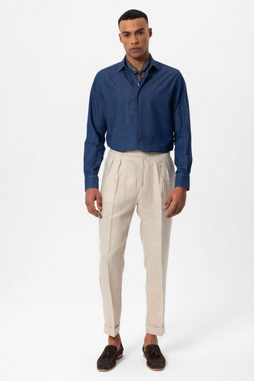 Navy Blue dominating with its unique stance the Antioch Long arm Shirt stands out with its luxurious design reflecting a characteristic silhouette. The design of Long arm is complemented with closure. The design ensures you feel extremely comfortable with its luxurious texture and fit adapting to your daily city styles and office combinations. Depending on your preference the design can be used with various pants allowing you to achieve a stylish and assertive look taking your style one step further.