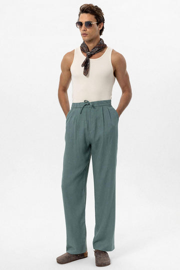 ANT Men's Linen Blend Baggy Pants with Waist Ties - Teaneck