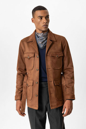 ANT Men's Slim Fit Belted Suede Coat - Salvatierra