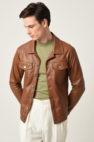ANT Men's Slim Fit Button Closure Leather Coat - Slidell