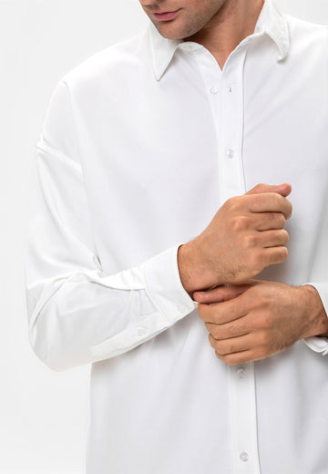 Ecru dominating with its unique stance the Antioch Long arm Shirt stands out with its luxurious design reflecting a characteristic silhouette. The design of Long arm is complemented with Button closure. The design ensures you feel extremely comfortable with its luxurious texture and fit adapting to your daily city styles and office combinations. Depending on your preference the design can be used with various pants allowing you to achieve a stylish and assertive look taking your style one step further.