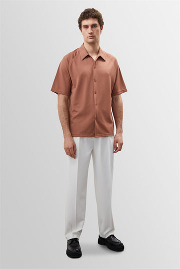 Light Brown dominating with its unique stance the Antioch Short arm Shirt stands out with its luxurious design reflecting a characteristic silhouette. The design of Short arm is complemented with Button closure. The design ensures you feel extremely comfortable with its luxurious texture and fit adapting to your daily city styles and office combinations. Depending on your preference the design can be used with various pants allowing you to achieve a stylish and assertive look taking your style one step further.
