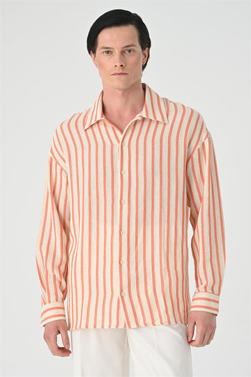 Salmon dominating with its unique stance the Antioch Long arm Shirt stands out with its luxurious design reflecting a characteristic silhouette. The design of Long arm is complemented with Button closure. The design ensures you feel extremely comfortable with its luxurious texture and fit adapting to your daily city styles and office combinations. Depending on your preference the design can be used with various pants allowing you to achieve a stylish and assertive look taking your style one step further.
