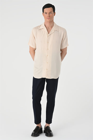 Beige dominating with its unique stance the Antioch Short arm Shirt stands out with its luxurious design reflecting a characteristic silhouette. The design of Short arm is complemented with Button closure. The design ensures you feel extremely comfortable with its luxurious texture and fit adapting to your daily city styles and office combinations. Depending on your preference the design can be used with various pants allowing you to achieve a stylish and assertive look taking your style one step further.