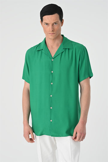 Green dominating with its unique stance the Antioch Short arm Shirt stands out with its luxurious design reflecting a characteristic silhouette. The design of Short arm is complemented with Button closure. The design ensures you feel extremely comfortable with its luxurious texture and fit adapting to your daily city styles and office combinations. Depending on your preference the design can be used with various pants allowing you to achieve a stylish and assertive look taking your style one step further.